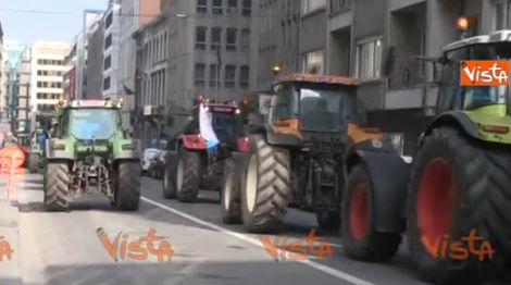 UE, la protesta di agricoltori e allevatori paralizza Bruxelles