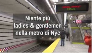 NEW YORK, 19 NOV – Niente più “ladies and gentlemen”, “signore e signori”, ma “passeggeri” e “voi tutti”, “passengers” e “everyone”. La metro di New York diventa neutrale dal punto del genere: la Mta, la società che gestisce i trasporti pubblici della Grande Mela, ha chiesto ai conducenti dei treni di fare gli annunci evitando di precisare il sesso di chi li ascolta.