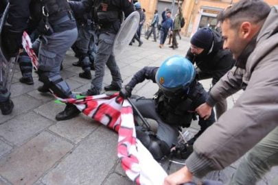 Tensione e scontri in Piazza Galvani a Bologna dove stasera è previsto un comizio del leader di Forza Nuova, Roberto Fiore. Un centinaio tra studenti e giovani del mondo antagonista bolognese, seduti a terra, è stato spinto fuori dalla piazza dalle cariche delle forze dell’ordine, schierate in tenuta antisommossa. Cinque le persone ferite nei tafferugli: si tratta di quattro ‘studenti’ e di un agente. Si è vista volare almeno una bottiglia di vetro.