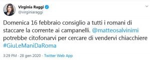 Raggi esca con dignità ed eviti un calvario personale – Se accetta un consiglio, Virginia Raggi farebbe bene ad evitare un calvario. Esca di scena con dignità, annunciando che non ci pensa minimamente a farsi dare una deroga al limite dei due mandati e che come promesso lei chiude qui la sua corsa. La Raggi fa oggettivamente pena se insiste a farsi del male. Quel 4,4 per cento è anche “merito†suo.
