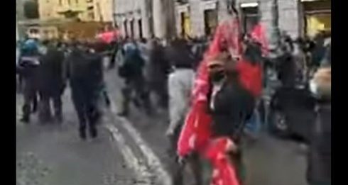 centri sociali dei Cobas, dei Carc e di altre sigle di estrema sinistra hanno fatto esplodere tre bombe carta e lanciato bottiglie