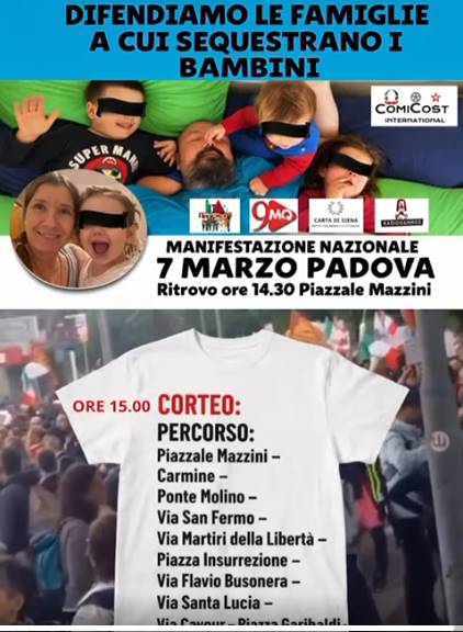 Comunicato stampa – Comicost International, quale organizzatore della manifestazione nazionale che si terrà a Padova sabato 7 marzo 2026 alle ore 15:30 in piazza Cavour invita tutti i cittadini a partecipare all’evento affinché venga portata nelle piazze l’iniziativa di una proposta di legge che modifichi lo status attuale nel quale versano oltre 40.000 famiglie italiane vittime di allontanamento dei propri figli dalle proprie abitazioni. Un sistema corrotto minaccia di prendere il sopravvento nei confronti dei valori più sacri della famiglia e dei diritti umani.