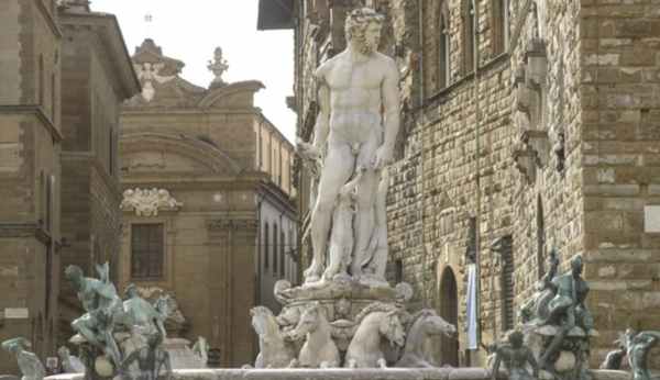 Firenze, straniera si arrampica sulla Fontana del Nettuno e la danneggia
