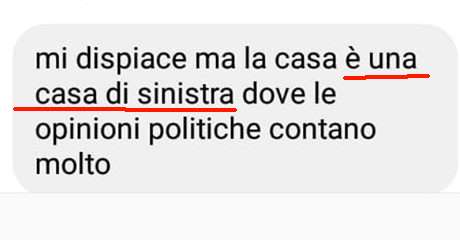 "Questa casa è di sinistra, dove le opinioni politiche contano molto". E' questo il messaggio che ha ricevuto Jessica Polo, una giovane leghista di 26 anni, in cerca di una casa a Bruxelles. La ragazza, consigliera comunale a Minerbe, stava cercando un nuovo appartamento perché chiamata come assistente del deputato