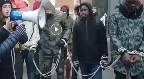 Reggio Emilia, i migranti sfilano legati “contro la nuova schiavitù”